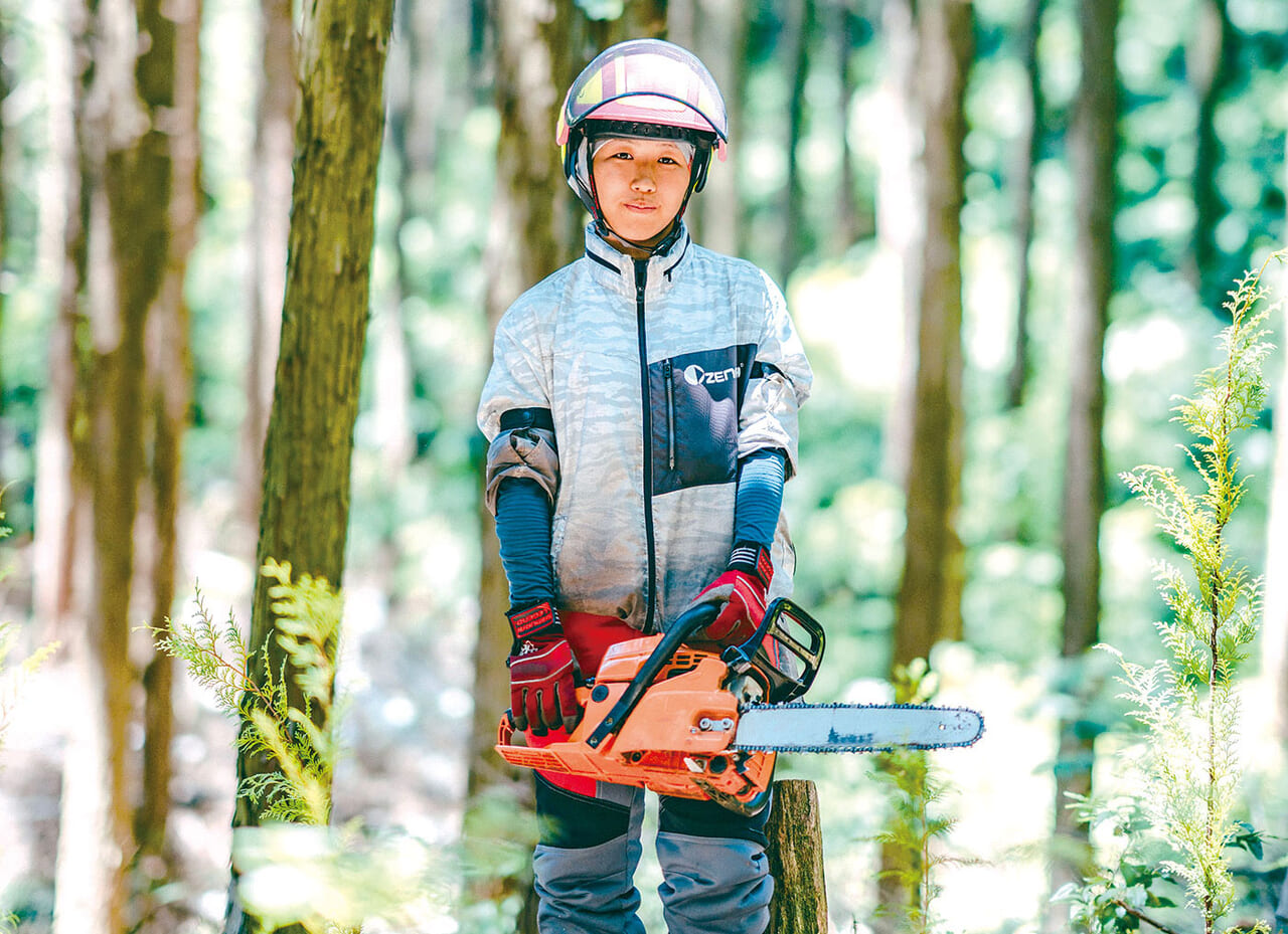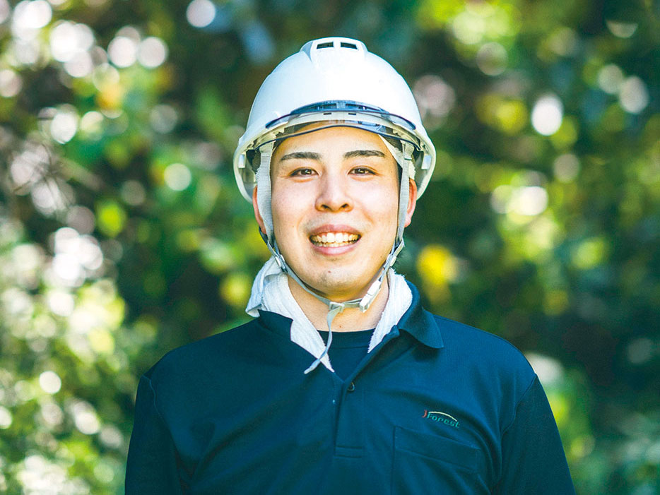 「林業の仕事はただ木を切るだけではなく、植えもする。友だちから林業について聞かれると、きれいな空気と水をつくる大切な仕事だと説明します。今はどんどん技術を身につけて、もっと仕事を任せてもらえるようになりたいですね」