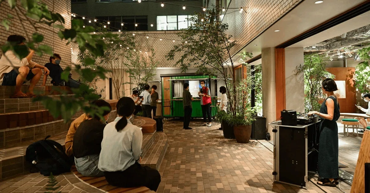 オフィス街の中心にありながら、緑と光が心地よく差し込む、開放的な屋外空間です。