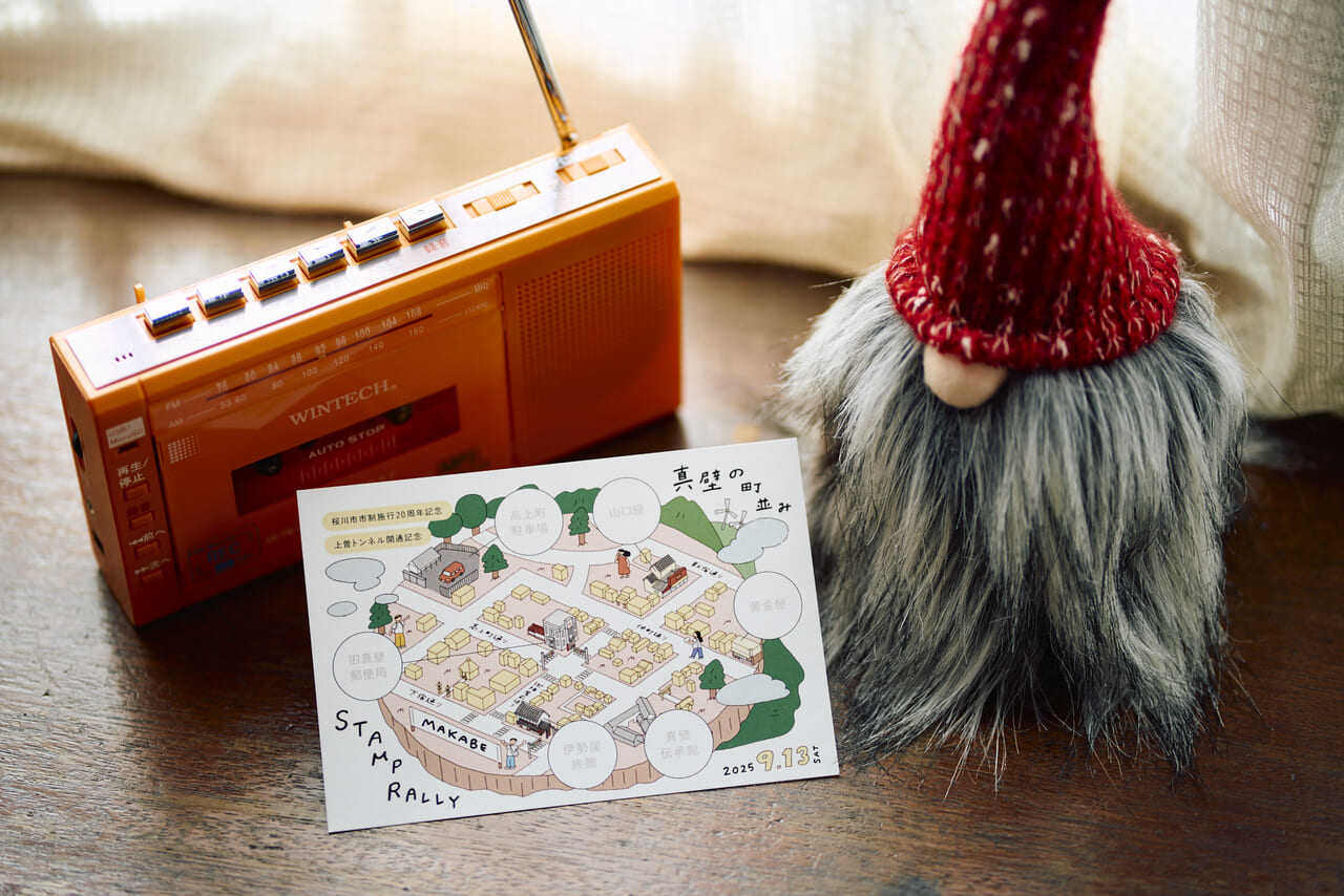 真壁地区で開催されたスタンプラリー用に制作したMAP。古き良き建物や文化が残る真壁を、浮世離れした”星”に見立てたデザインに。