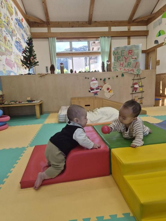 子供達もママ同士も同級生クリスマスの飾り付けされた支援センター『はぐ』での写真。