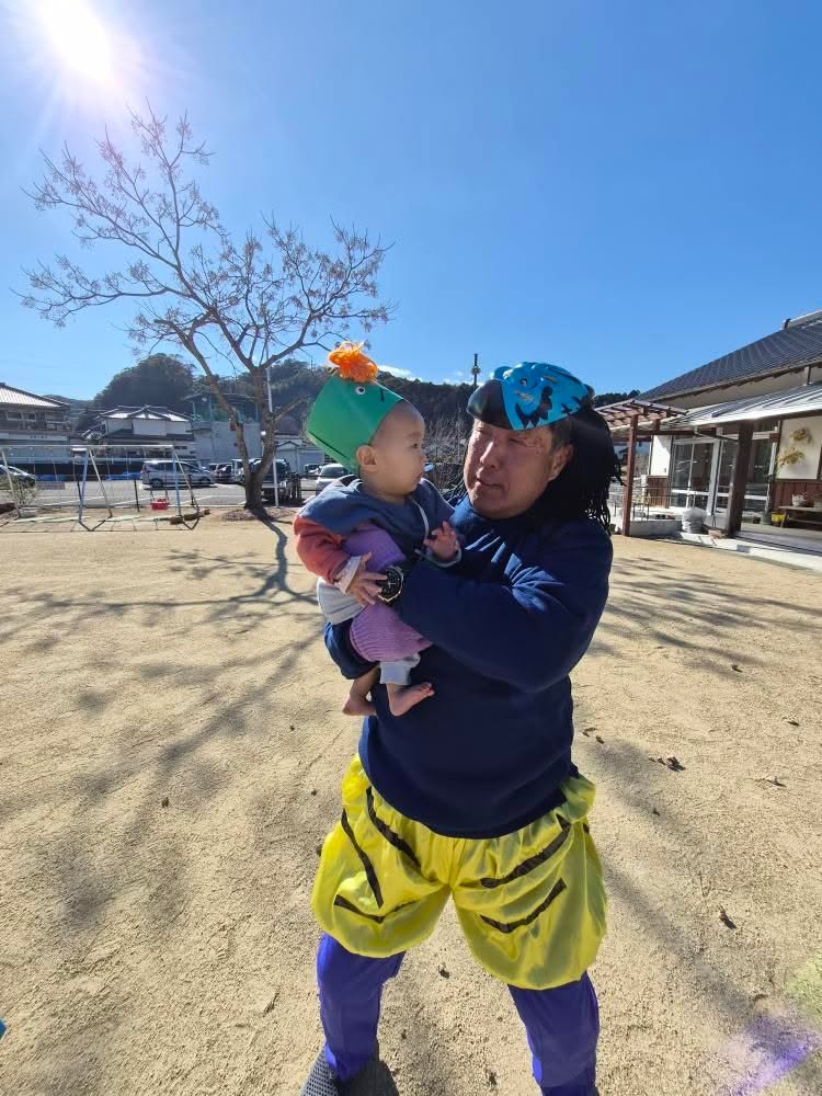 鬼さんには全く動じなかったです。お面の下は優しいお顔♪#子育て支援センター #はぐ #節分 #好きやき中土佐フォトコンテスト※青鬼さんには顔出しOKの許可をいただいてます(笑)