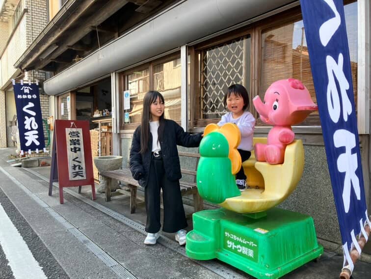 大正市場近くのお店の前にあるレトロなゾウさんの乗り物