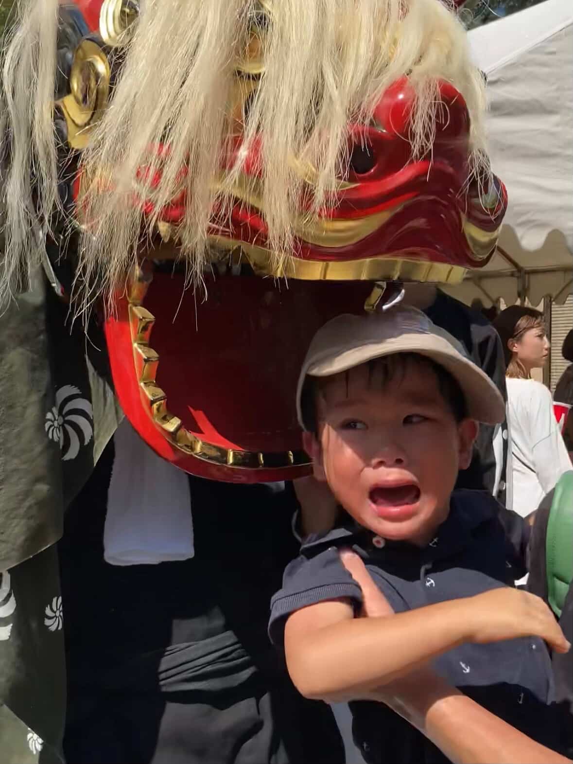 5歳になった長男は今ではご近所のおばちゃんたちと友達のように挨拶する仲です。長男初めてのおなばれでは獅子舞に頭を噛んでもらい邪気払い。