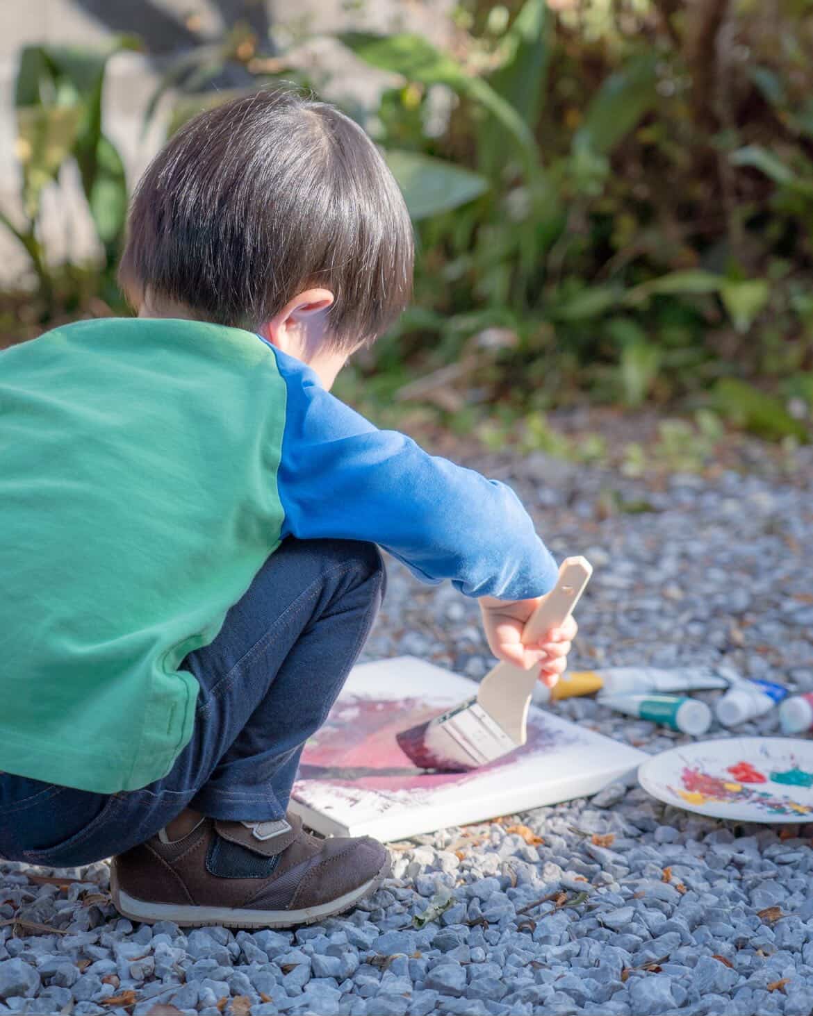 自宅の庭はアトリエ。画伯のこだわり「色は全混ぜ」