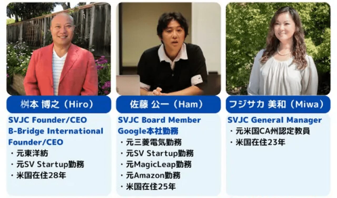 SVJCは、「世の中の常識にとらわれない新しい挑戦ができる人材を育成、輩出し、それらの人材とともに日本発の研究やビジネスのシーズとシリコンバレーの強みとを融合し、世界に発信する」ことをミッションとして設立しました。SVJCでは、2015年9月の設立以来、延べ1,000人以上・80回以上のオンラインセミナーやシリコンバレー現地でのスタディ・ツアーを実施しています。