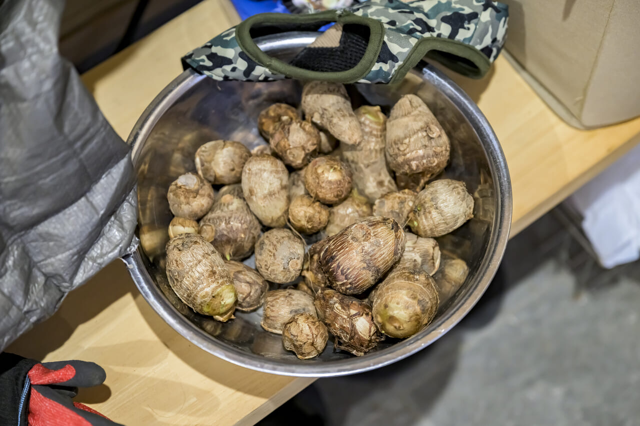 知り合いから頂いた里芋。地域の人たちから旬の食材をおすそ分けしてもらうことも多い。