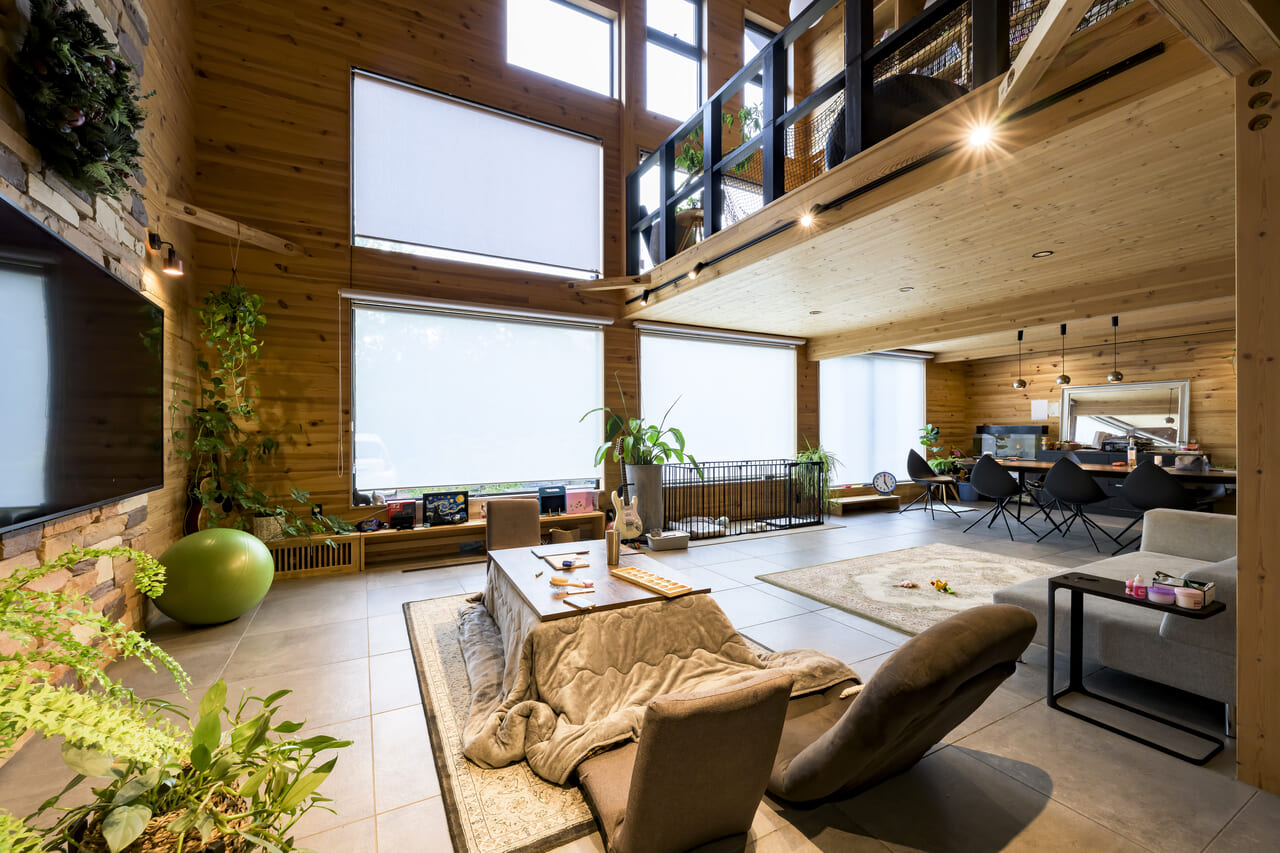 吹き抜けの開放感が印象的な森下邸。