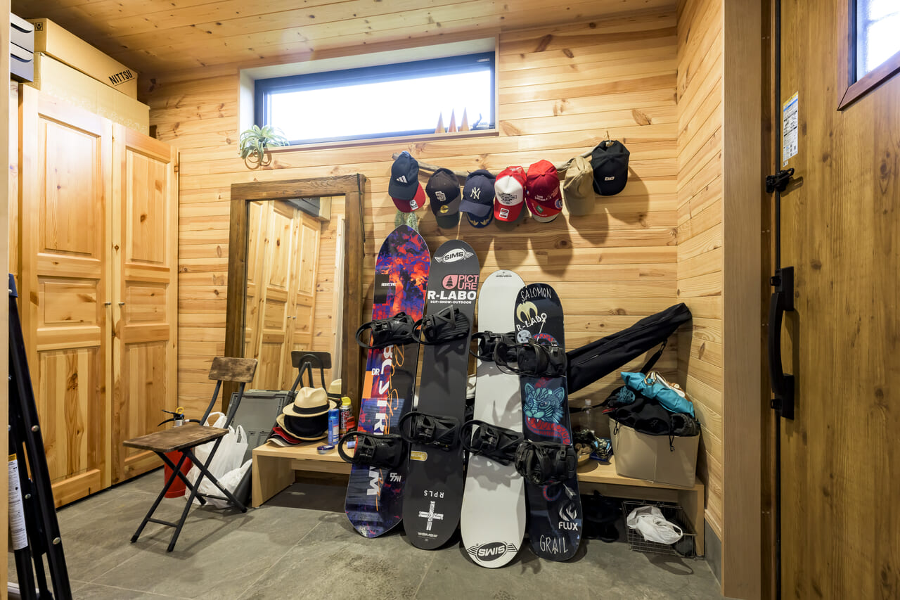 玄関はスノーボードも置ける広さを確保。