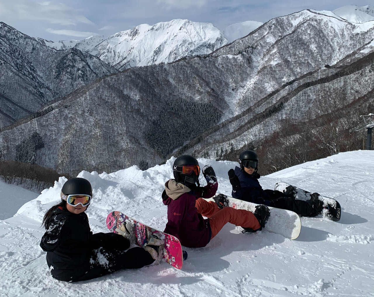冬の定番はスノーボード。スキー場で働く従業員も友達だという。みなかみ町の小・中学生は、町内のゲレンデのリフト券を割安で購入できる。