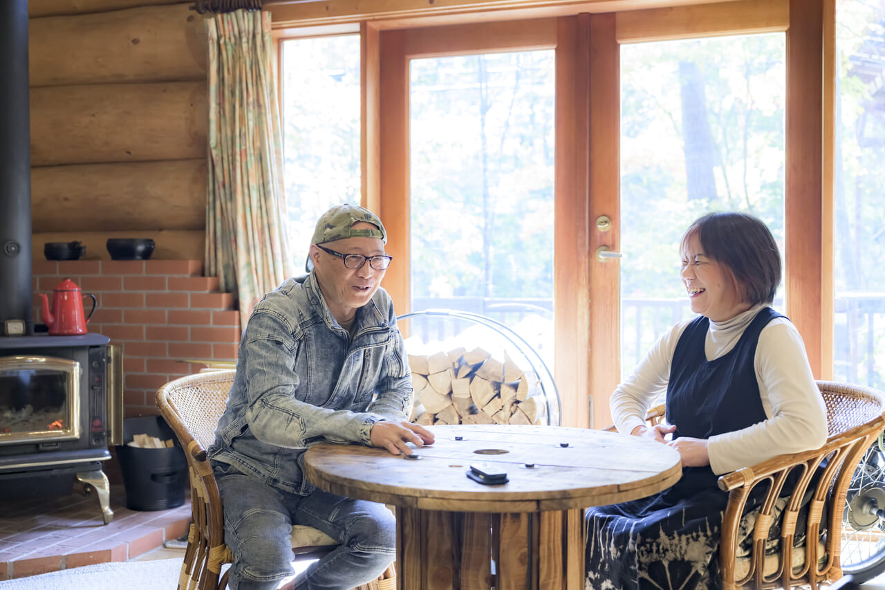 剛さんは医薬品業界の企業に30年以上勤め、55歳で早期退職。香織さんと共に嬬恋村の別荘地へ移住し、現在は医療経営アドバイザーとして薬局の顧問業務を行いながら、貸別荘事業「アミーズヴィラ」を営む。「毎日がキャンプ」をモットーに森の暮らしを楽しむ日々。