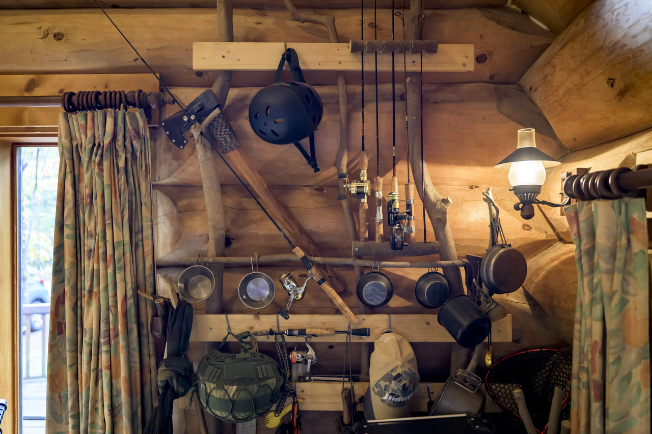 森と一体になったこのログハウスで暮らしていると、「毎日がアウトドア、毎日がキャンプ、毎日がサバイバル」(笑)。もう他のところにキャンプに行かなくなりました。