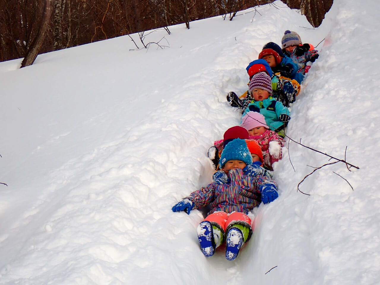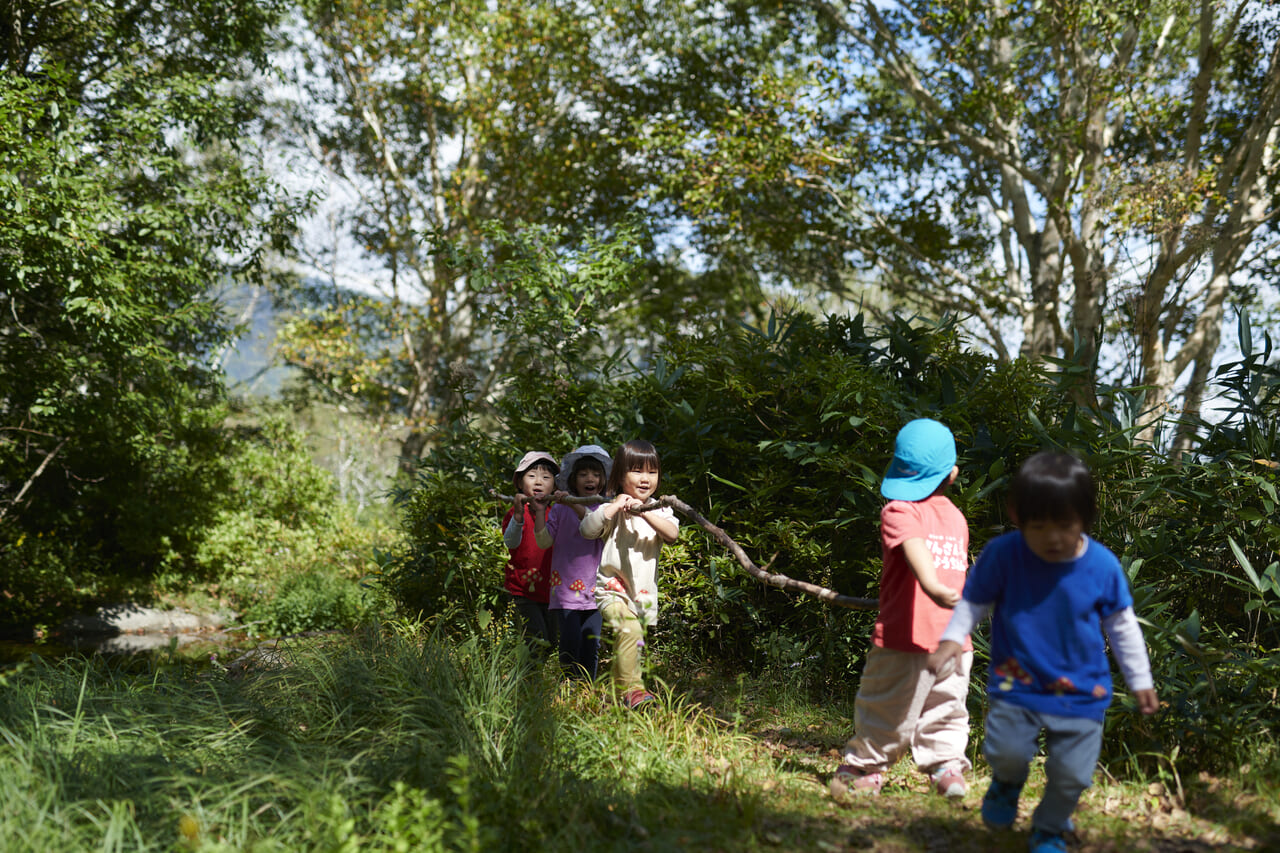片品村の豊かな自然をフィールドに、子どもたちと日々活動しています。私たちの森のようちえんは園舎がありません。毎日違う場所へ出かけ、そこで子どもたち自身が話し合い、どのように時間を過ごすかを決めています。子どもの主体性を尊重できるところが、森のようちえんの大きな特長です。自然の中で自分で考えて判断し、困ったら誰かに助けを求め、誰かが困っていれば手を差し伸べる。それが日常的に行われます。トップダウンではなく、「自分で考える」ことが、生きる力の土台になると考えています。
