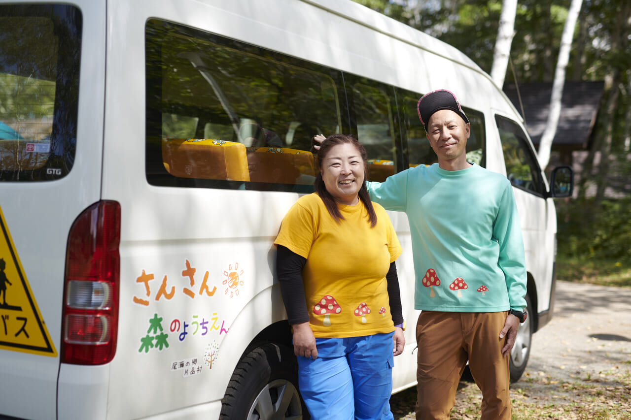 華恵さんは、神奈川県横浜市で7年間、幼稚園教諭として勤めたのち、片品村の保育園で11年間の経験を重ねた。友さんは関東の大学を卒業後、みなかみ町でスキー場のインストラクターに。その後、片品村に移り自然ガイドを兼業。やがて華恵さんと結婚し、2017年から二人で「さんさん森のようちえん」の活動を開始。