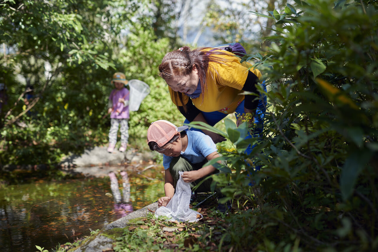 子どもの「やってみたい」を、そばであたたかく見守る松浦さん。生きものとの出会いも、大切な学びのひとつ。