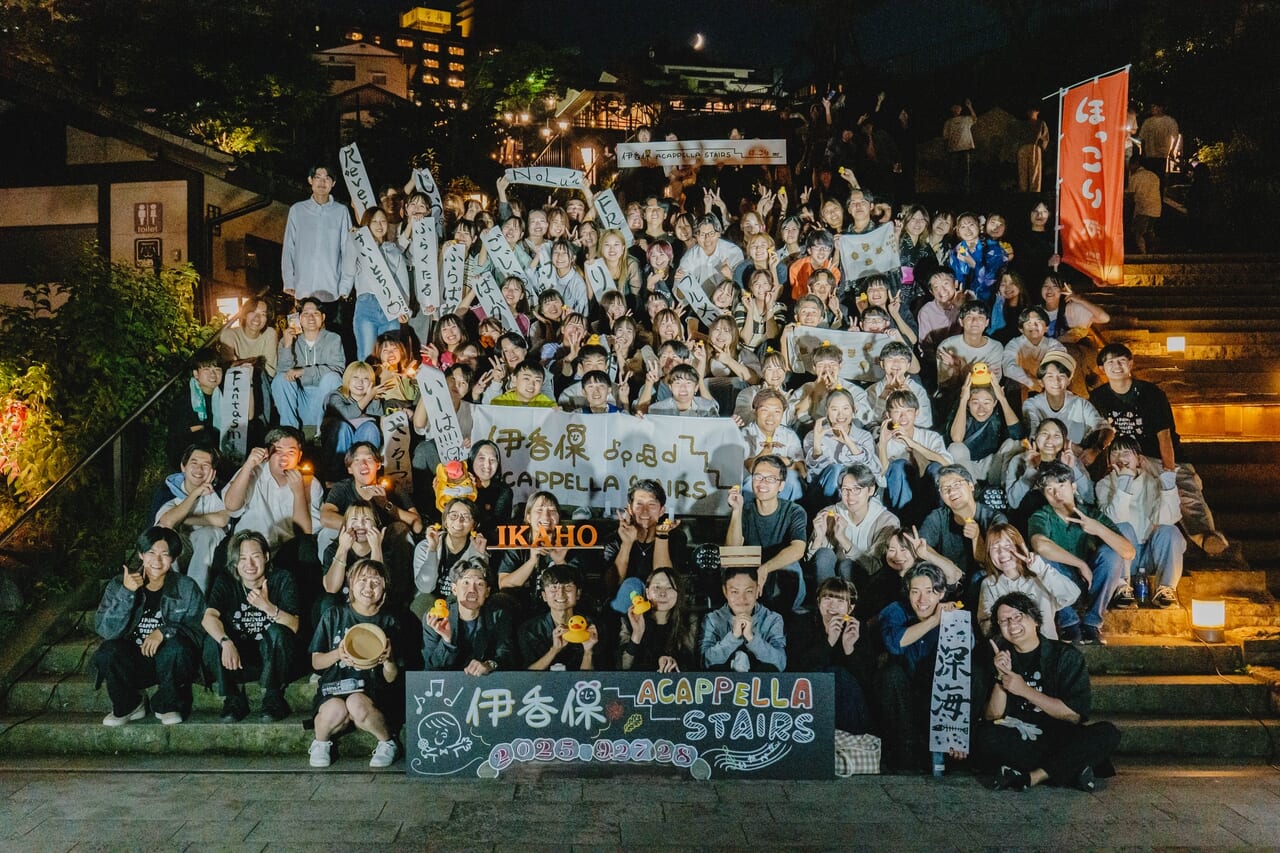 2019年に一度は企画したものの、コロナ禍で開催を断念。しかし、声をかけていた県内の大学生たちの後押しを受け、2022年に「伊香保 ACAPPELLA STAIRS」を初開催。アカペラ愛好家が集うSNSなどで告知を行い、初回から400人余りを動員した。歴史ある温泉街に、若い世代の歌声が新たな賑わいをもたらした。