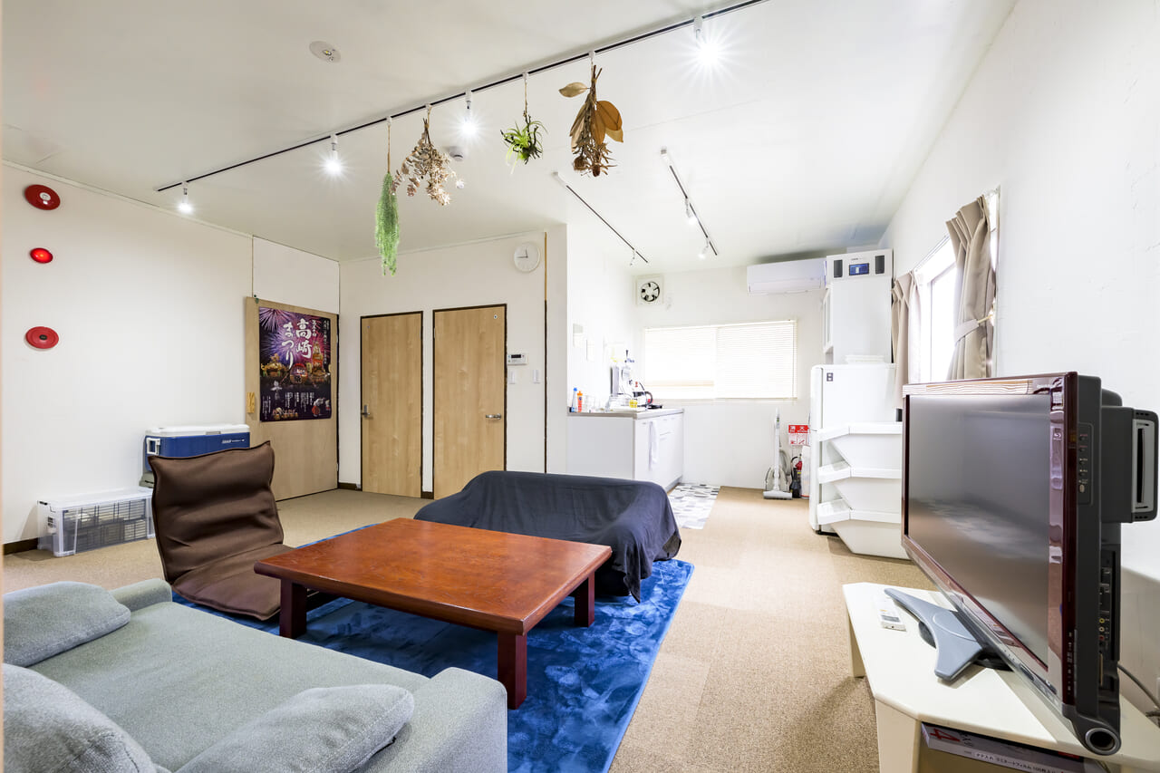 (さんぽ屋)必要な設備が揃った明るい雰囲気の2階の共有リビング。