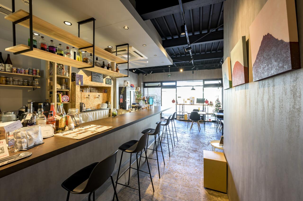 実家近くにあった元薬局の建物を改装して、2022年12月にカレーとクラフトビールをメインで提供するカフェバーを開業。翌年には2階でゲストハウスもオープンした。地域の魅力発信をコンセプトに、地元の人と宿泊客が自然に交わる場を目指して活動を続けている。