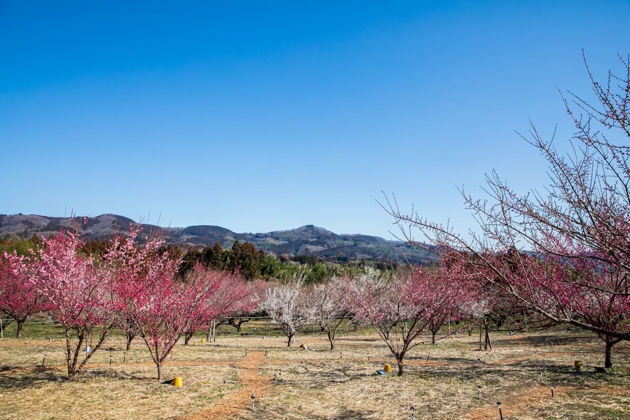 全国第2位の梅の生産量を誇る群馬県。なかでも「ぐんま三大梅林」のひとつに数えられる安中市の秋間梅林(あきまばいりん)は、約50ヘクタールの丘陵地に3万5千本の木々を擁する名産地だ。2月から3月の花見シーズンには、紅白の花が丘一帯を染め上げ、訪れる人の目を楽しませている。