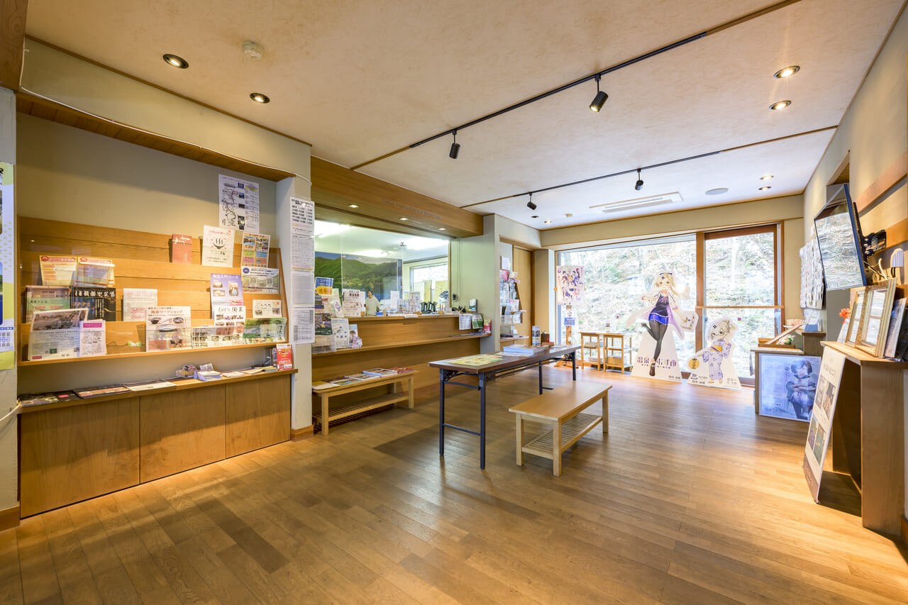 四万温泉の温泉街入り口にある「四万温泉協会」のオフィスは、観光案内所を併設し、各種観光や日帰り温泉の紹介などに対応。レンタサイクルも行っている。四万温泉の気分を自宅に持ち帰れる入浴剤など、四万温泉グッズも豊富に販売。宮﨑さんたちの笑顔に会いに訪れてみては。