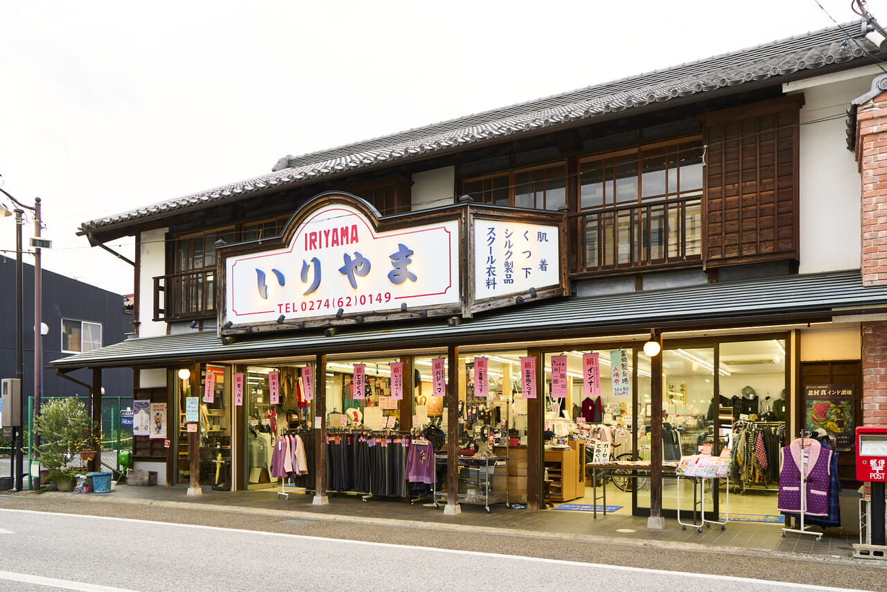 世界遺産・富岡製糸場のすぐ近く、富岡商店街で1901年から続く洋品店。肌着、靴下、シルク製品を中心に、普段着や学生服、体操着など、日常生活に必要な衣料品を幅広く取り扱う。「いりやまで服を買うと笑顔になっちゃう」が店主・入山さんのモットー。単なる衣料品販売にとどまらず、お客さまとの温かい会話を大切にしている。