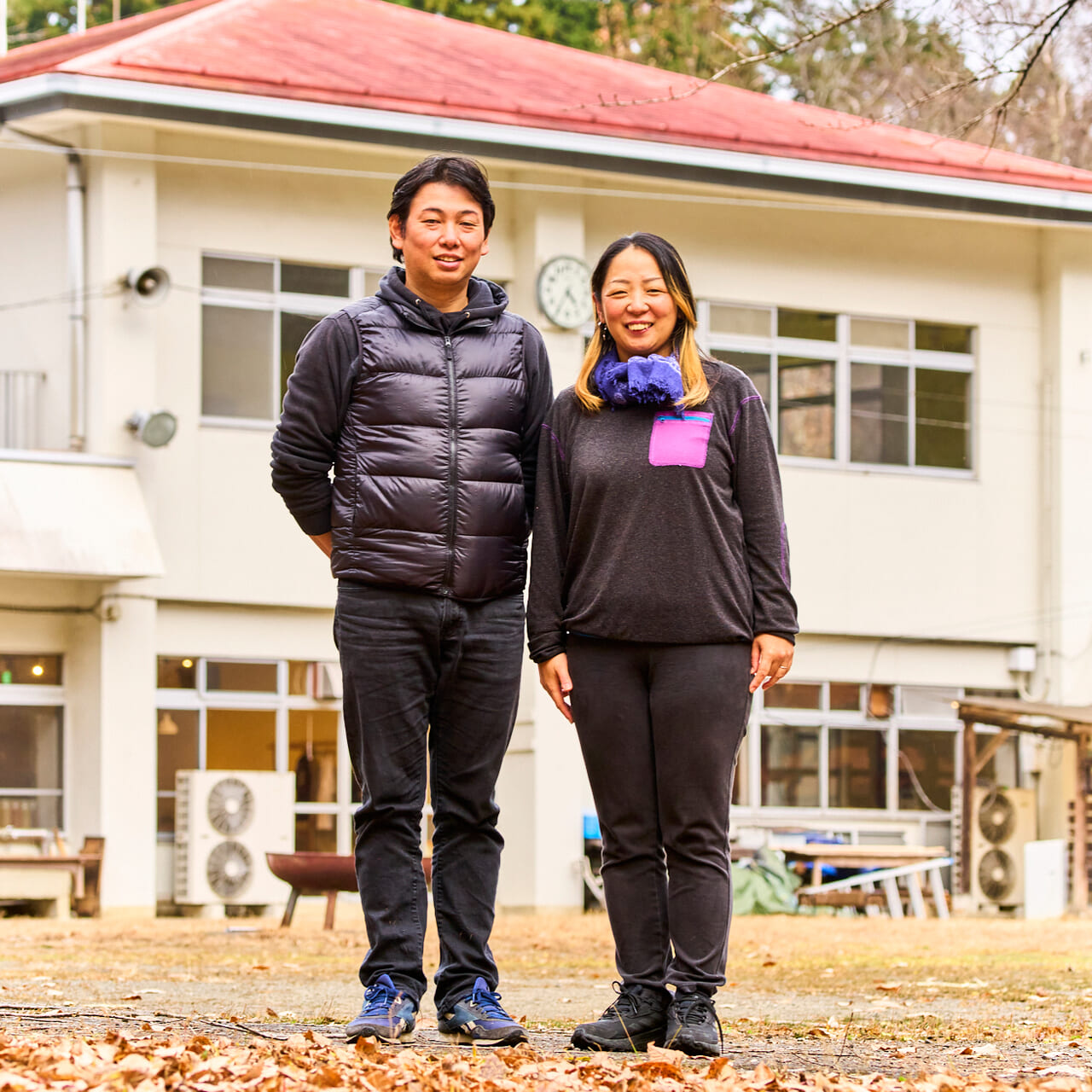 充さんは千葉県柏市出身、安津美さんは群馬県高崎市出身。安津美さんは群馬で就職したのち、転職を機に東京へ。20年間の東京生活を経て、2018年に結婚・出産を機に充さんとともに富岡市妙義地区へ移住。夫妻は娘、犬2匹、ヤギ1匹とともに暮らしながら、キャンプ場「いとのにわ」を運営。友人たちと一般社団法人いとのにわプラスを設立し、2023年には群馬県の施設だった「旧妙義青少年自然の家」を取得して宿泊・飲食を中心とした「妙義自然の家プラス」をオープン。人が集い、交わる拠点づくりを行っている。