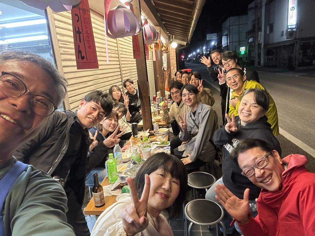 27年間にわたり、地域を盛り上げる活動を続けてきた入山さん。「げんきフェスタ」のような年に一度のイベントを主催する一方で、日常的に人が集う場も大切にしている。それが、「いりやま」の軒先で毎週月曜日に開かれる持ち寄りの飲み会「げつのみ」だ。水澤さん夫妻も、この集まりを楽しみにしているという。