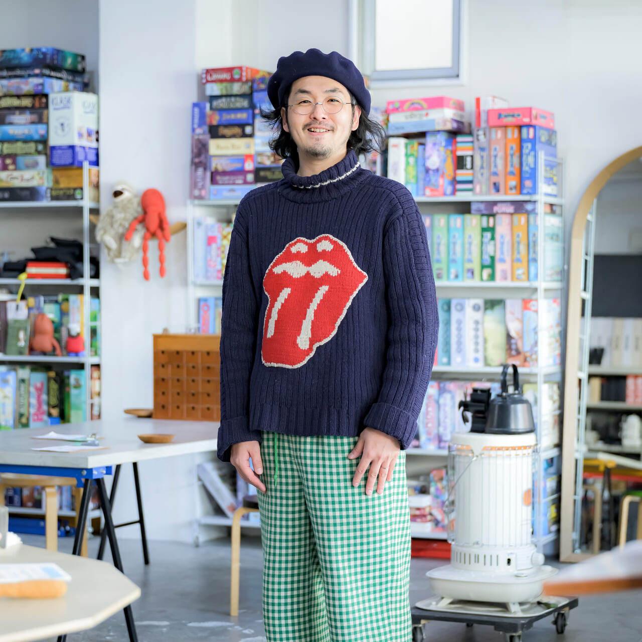 昔ながらの佇まいを残す店舗が軒を連ねる桐生市本町六丁目商店街に、思わず足を止めたくなる風変わりな店がある。ガラス越しに見えるのは、本格的な工業用ミシンと天井まで高く積まれた色鮮やかなボードゲームの箱。ここはファッションデザイナーのアトリエでありながら、夜には大人や学生たちが集う遊び場へと姿を変える「ふふふ」という名のアトリエ兼カフェ。歴史とカルチャーが交差する織物の街に惚れ込み、東京から移住して6年余り。オーナーの和﨑拓人さんの目に映る、桐生の魅力とは。