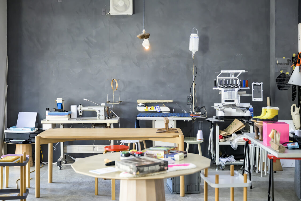 ミシンの音が響くアトリエは