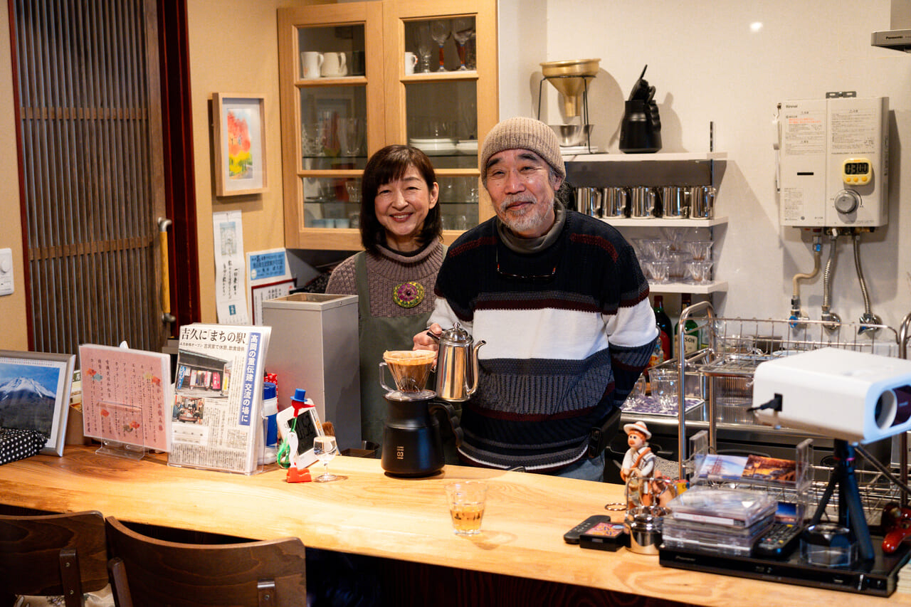 重要伝統的建造物群保存地区(重伝建)に指定されている高岡市・吉久(よしひさ)地区。その一角に佇む築100年の民家でカフェを営んでいるのが、柴田健太朗さんと馨子さん夫婦だ。健太朗さんの定年退職を機に、東京都から両親とともに移住し、充実した第二の人生を歩んでいる。