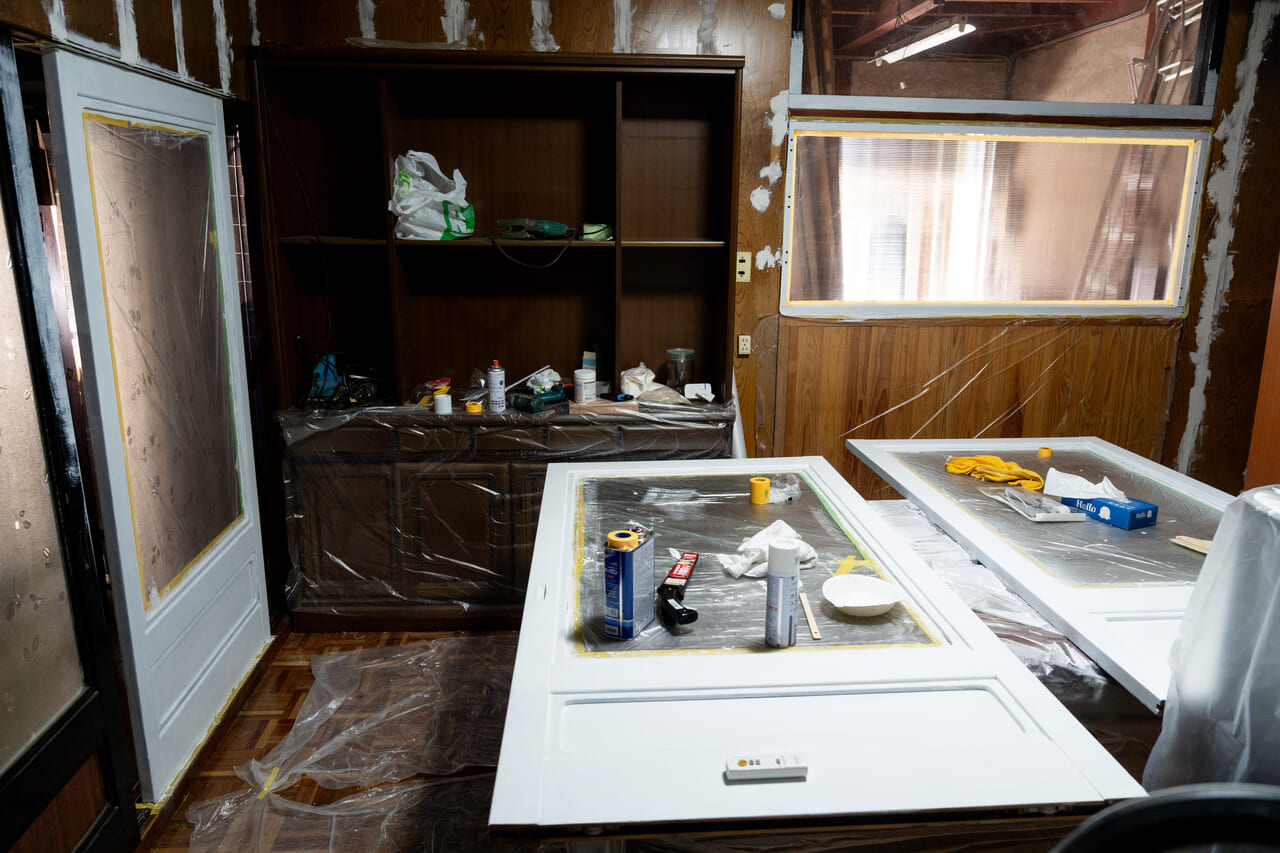 「もともと工作が好きで、DIYをやってみたかったんです。1階を共有リビングにして、2階を客室にするために、いまは壁の漆喰塗りやクロス貼りをしています。父が建築士なので、スマホで家の写真を送ってアドバイスもらっています」