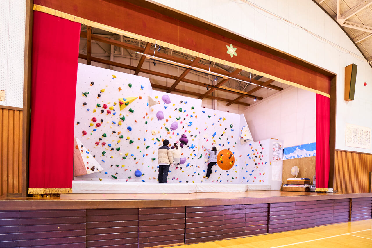 ステージ上には3面のボルダリングウォールが設置され、初心者から上級者まで自分に合った難易度にチャレンジできます。