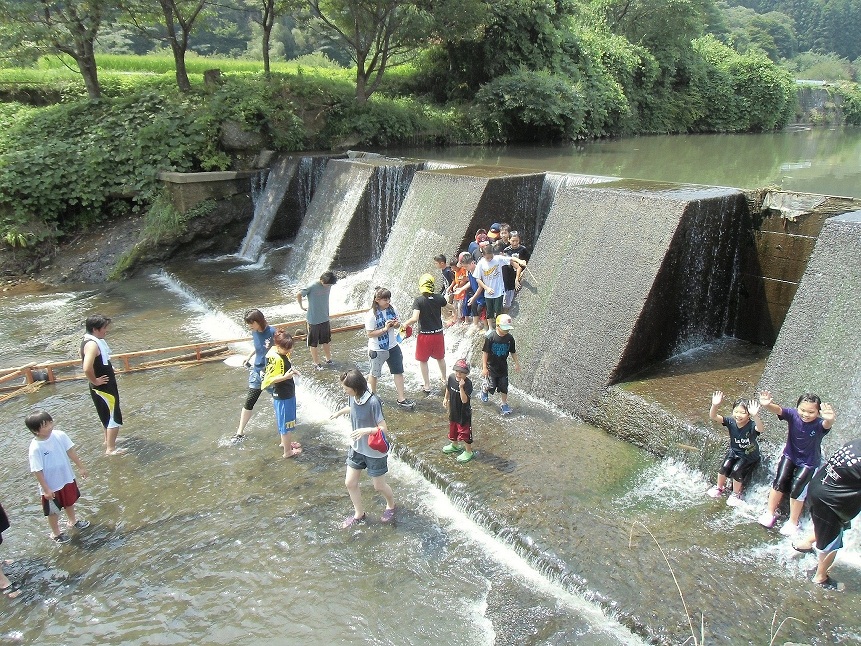 5月にはたけのこ収穫、7月から9月にかけては、校舎から歩いて15分ほどの浅川での川遊びや、魚のつかみどりが楽しめます。さらには、昔ながらのドラム缶風呂の入浴体験も。